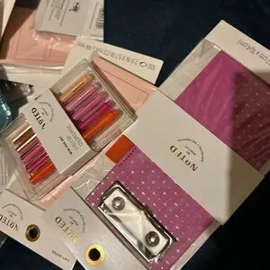 Full medium box of all new noted by post it items. There are pens notebooks lab top cases, post it. There MAY be repeats. The pens alone are $16 retail each. This is a way better deal as i had 5 items posted for $20, this will be a medium flat rate box(for size reference )of items so more than 5 items! Great for teachers or everyone who loves stationary like me lol