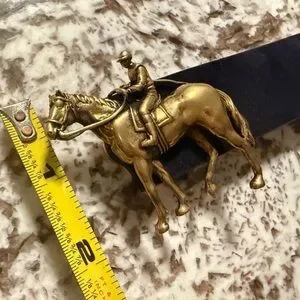 Polo Ralph Lauren Navy Suede Equestrian Belt Gold Horse Buckle Italy Sz 38
