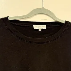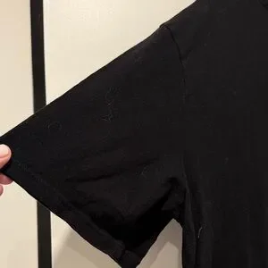 Sleek black tee with short drop shoulder sleeves. Ideal for casual wear.