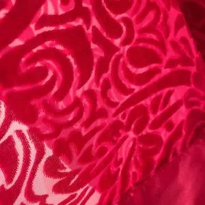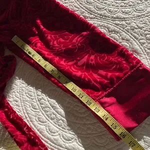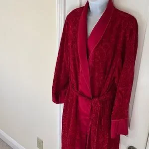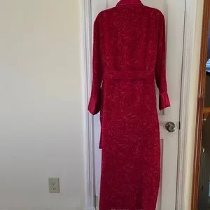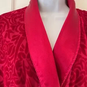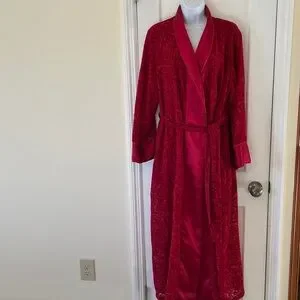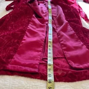 Velvet Burnout Satin Wrap Robe Long Shawl Collar Belt Pockets Women M Red Floral