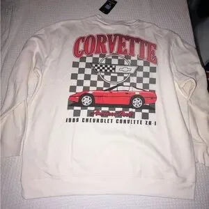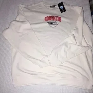 Classic white sweatshirt featuring a bold Corvette logo. Ideal for car enthusiasts. Official merch from General Motors. NWT. Men’s 2XL. Cotton poly blend. Please see photos. Brand new. Excellent condition. Smoke free, pet free home.