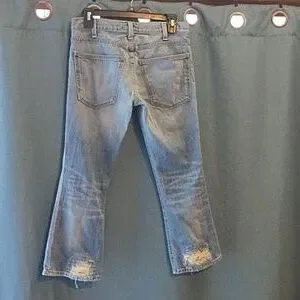 Current/Elliott Light Blue Distressed Cropped Jeans