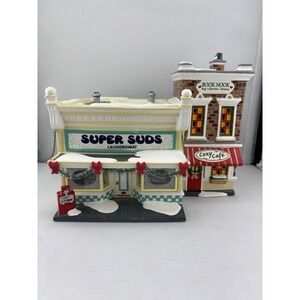 The Department 56 Original Snow Village "Super Suds Laundromat" 55006 is a collectible holiday and seasonal village house from the iconic Snow Village collection. As an original piece from Department 56, known for their quality and detail, this Laundromat building adds charm and nostalgia to any village display. Perfect for collectors or those looking to enhance their holiday décor with a unique and whimsical addition to their village scene.