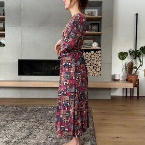April Cornell Burgundy Patchwork Print Long Sleeve Maxi Dress