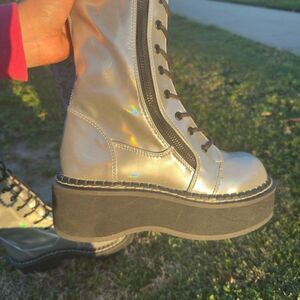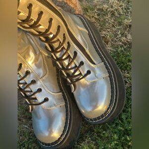 Steal the show in comfort and style in these exclusive silver combat boots.