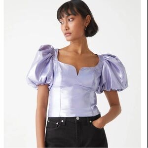 & Other Stories Metallic Puff Sleeve Top in Lilac size 36 / S