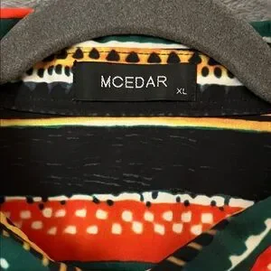 MCEDAR Men's Short Sleeve Button-Up Shirt in Black, Orange & Green XL