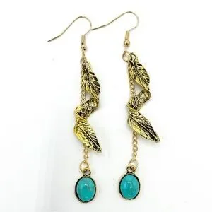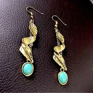 Boho Chic Festival Gold tone & Faux Turquoise dangle earrings