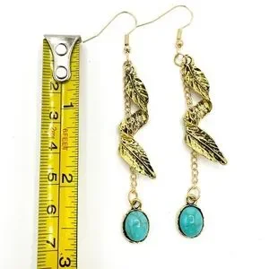 Twisted leaf design with faux turquoise stone hanging from a chain. So pretty!