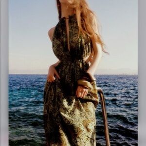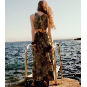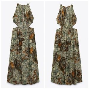 Zara Green Paisley Cutout Dress Size Large