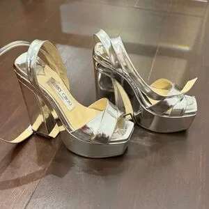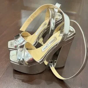 Shine with these metallic silver platforms by Jimmy Choo. Stylish and bold for any event.