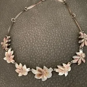 This elegant floral necklace was purchased in Tahiti and made by local craftsmen.