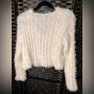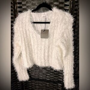 Soft and fuzzy V-neck cropped sweater. Perfect for cozy days. Elegant and chic style. New with Tags.