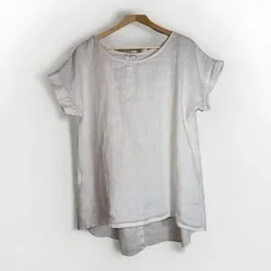 Terzo Millennio Sand 100% Linen Short Sleeve Hi-Low Hem Tunic Top Size Small