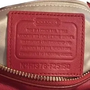 Coach Scarlet Leather compact crossbody bag gold-tone hardware. Classic Coach with adjustable crossbody strap, two exterior side pockets, interior zip pocket and signature Coach leather hangtag. Approximate dimensions: 9.5" W × 5" H × 3.5" D. Adjustable crossbody strap length: 42"–48". Condition: Excellent | Color: Red. Top-rated seller, same-day shipping. Bundle, save, and shop my closet for more designer-quality bags and accessories.