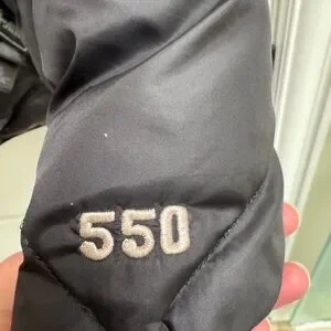 Worn maybe 5x, in good condition but does have slight dirt on the wrists of the plaid side. Overall good condition with minor surface wear. Lighter puffer jacket - 550