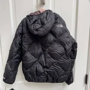 The North Face Girls Size Medium (10/12) Black & Plaid Reversible Puffer Jacket