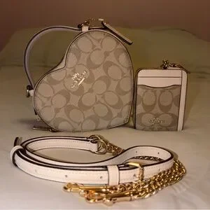 Coach Heart Crossbody Bag + Card Holder Set in Canvas Chalk Signature