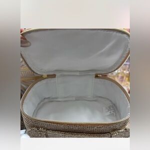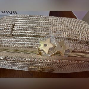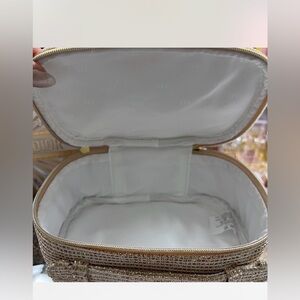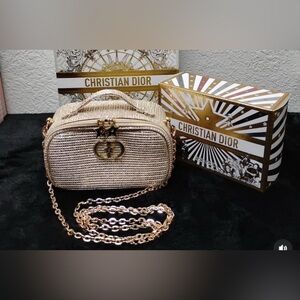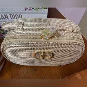 New Dior Beige Woven Cosmetic Pouch with Gold Logo