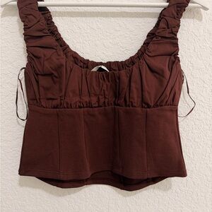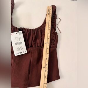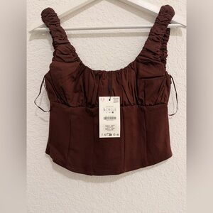 ZARA Chocolate Brown Cotton Corset Style Crop Top | Ruched Strap Bustier Top