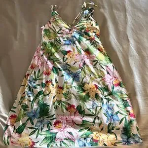 Tommy Bahama Orchid Garden sleeveless spa dress in womens XS. Features a soft floral print, Vneck design, and comfortable athleisure fabric perfect for warm weather, travel, or casual wear.