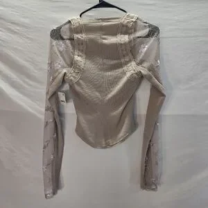 Free People Women’s Small Jolie Long Sheer Sleeves Square Neck Cashmere Camo New. 15 inches armpit to armpit. 20 inches long