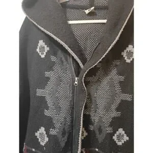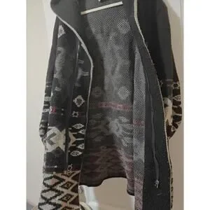 That is a truly unique piece! The black and white and red Aztec inspired patterned cardigan in the image has a distinctive design that certainly stands out.