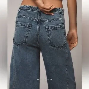 Pilcro at Anthropologie pull on, high rise, wide leg jeans.