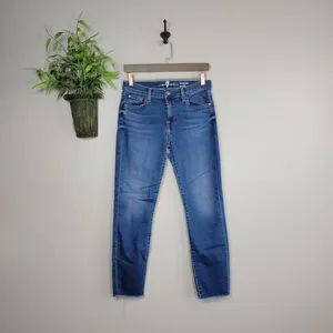7 For All Mankind Roxanne Skinny Ankle Jeans Frayed Raw Hem Mid Rise 7FAM 28