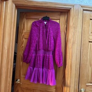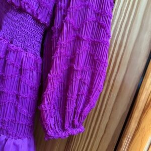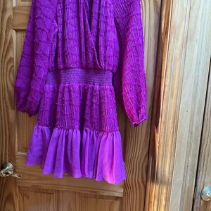 Charming fuchsia dress with ruffled details. Perfect for casual outings.