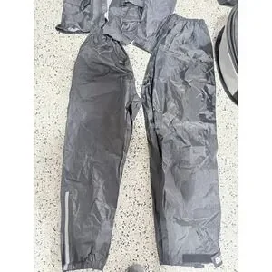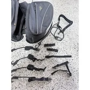 You get everything in the pictures…rain gear (2 pants, Coat, Boot Covers, helmet cover, saddlebags, straps, bungee chords, vest etc…