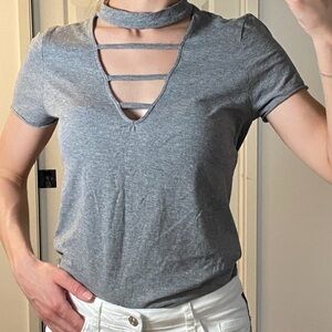 Forever 21 Grey Strappy Cutout Choker Neck Top - Size Small