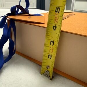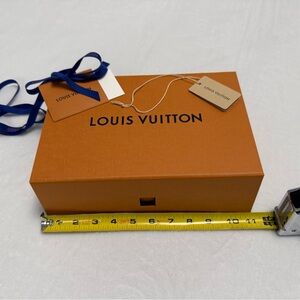 Louis Vuitton presentation box with bold logo. Includes blue branded ribbon and hang tag. Has snap like closure. EXCELLENT CONDITION!