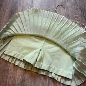 Chic light green mini skirt with pleats. Perfect for versatile styling.