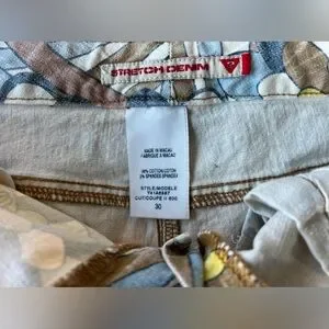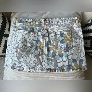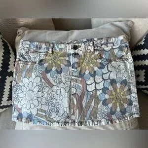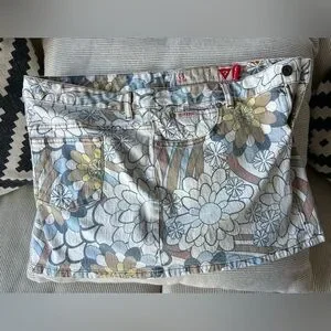 Guess Jeans, Style Modele Floral Denim Mini Skirt in Pastel Colors of Blue, Brown & Yellow and white Blooms Floral-print Patterned. Super cute definitely a must have for the summer. Front pockets and belt loop details. All Buttons are Logo Stamped. Size 30 Measurements Waist 16 1/2”, Rise 12”, Hem Line 20”, 98%Cotton & 2% Spandex Casual, feminine vibe, beach attire, fun and cute. Easy Care Machine Wash. If you have any questions, please ask🥰Vintage, Y2K, NWOT🏖️D