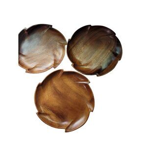 Handcrafted MCM Wood Decorative Serving Plates Set Of 10 Rustic Kitchen Dining A