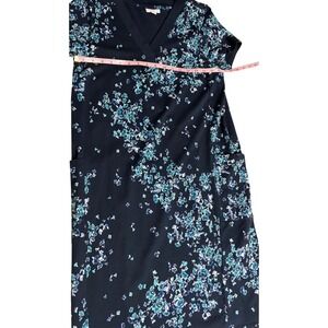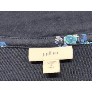 J.Jill Fit Navy Blue Teal Floral French Terry V-Neck Pocket Dress Small Tall