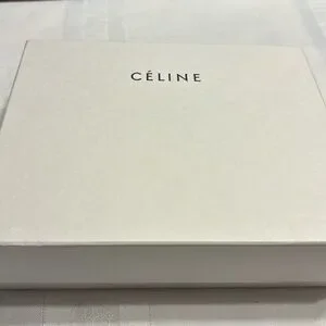 The branding on the box uses the "CÉLINE" logo with an accent (é). This style was used during the tenure of former creative director Phoebe Philo. Under current creative director Hedi Slimane, the accent was removed from the official logo.