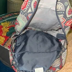 Vera Bradley floral paisley backpack. Front zip pocket and roomy main compartment. Padded shoulder straps for comfort. Bold multicolor print for everyday use.
