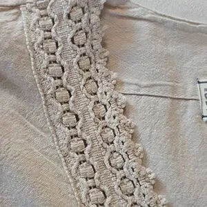 Seaspice Beige Lace Trim Tunic Dress 100% Peruvian Cotton Size M Boho Beach