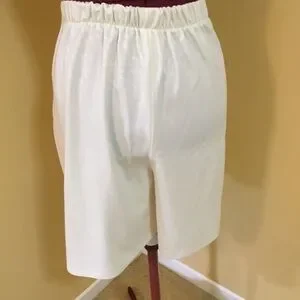 Shorts pinch pleated in front with elastic waist at the back