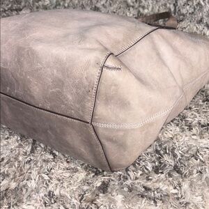 Stylish taupe tote with a clean, versatile silhouette. Crafted from soft leather with double top handles for comfortable carrying. Features subtle stitched details for a refined look. Perfect for daily use and easy to pair with any outfit.