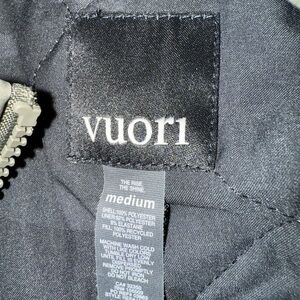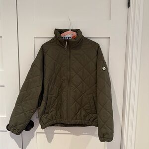 Quilted bomber jacket by Vuori. Features front zipper and elastic cuffs. Comfortable and stylish.