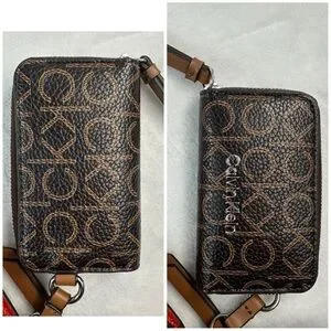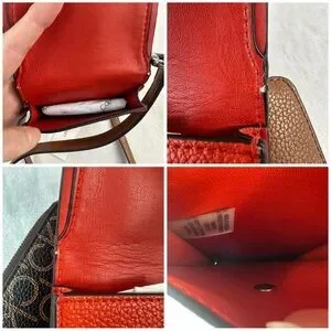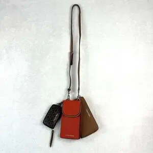 Calvin Klein Women's Bella Multi Crossbody Purse Wallet Coin Pouch Red Brown
