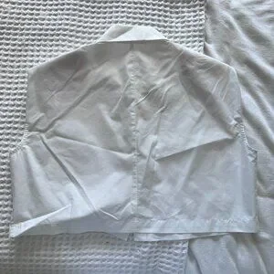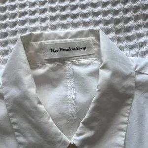 Cropped button down sleeveless button down top from The Frankie Shop. Two pockets on the chest. Built in shoulder pads for structure