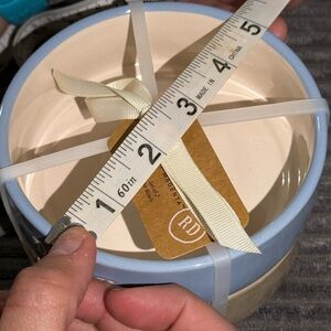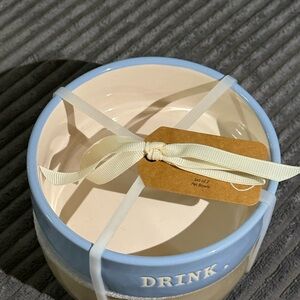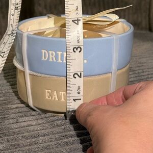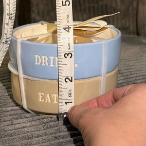 Rae Dunn Blue & Tan Pet DRINK / EAT Ceramic Bowls - Set of 2- NWT