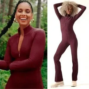 NWT Athleta x Alicia Keys Goddess Bodysuit Jumpsuit in Maroon Size Large NEW
