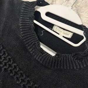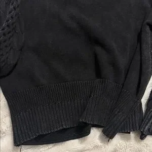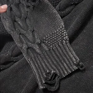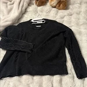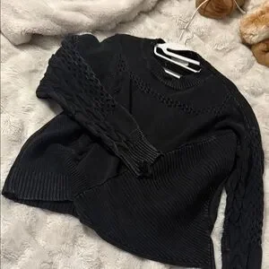 Stylish black sweater with unique knit patterns. Ideal for versatile wear.