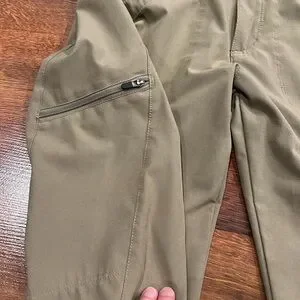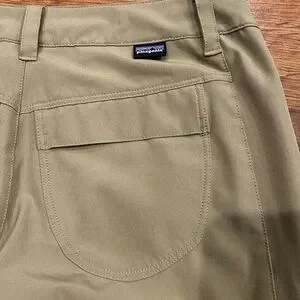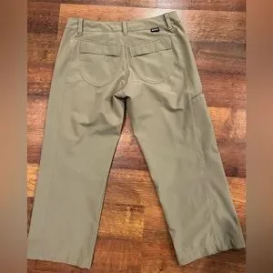 Great condition- no holes or stains. Patagonia Womens Happy Hike Capri Pants Zip Pockets Stretch Tan Green Size 2.