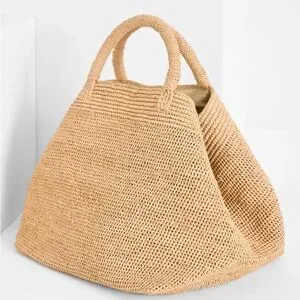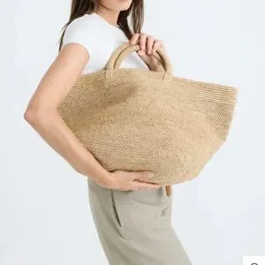 NWT IBELIV Raffia Tote Vanilla Tea Handwoven Raffia Large